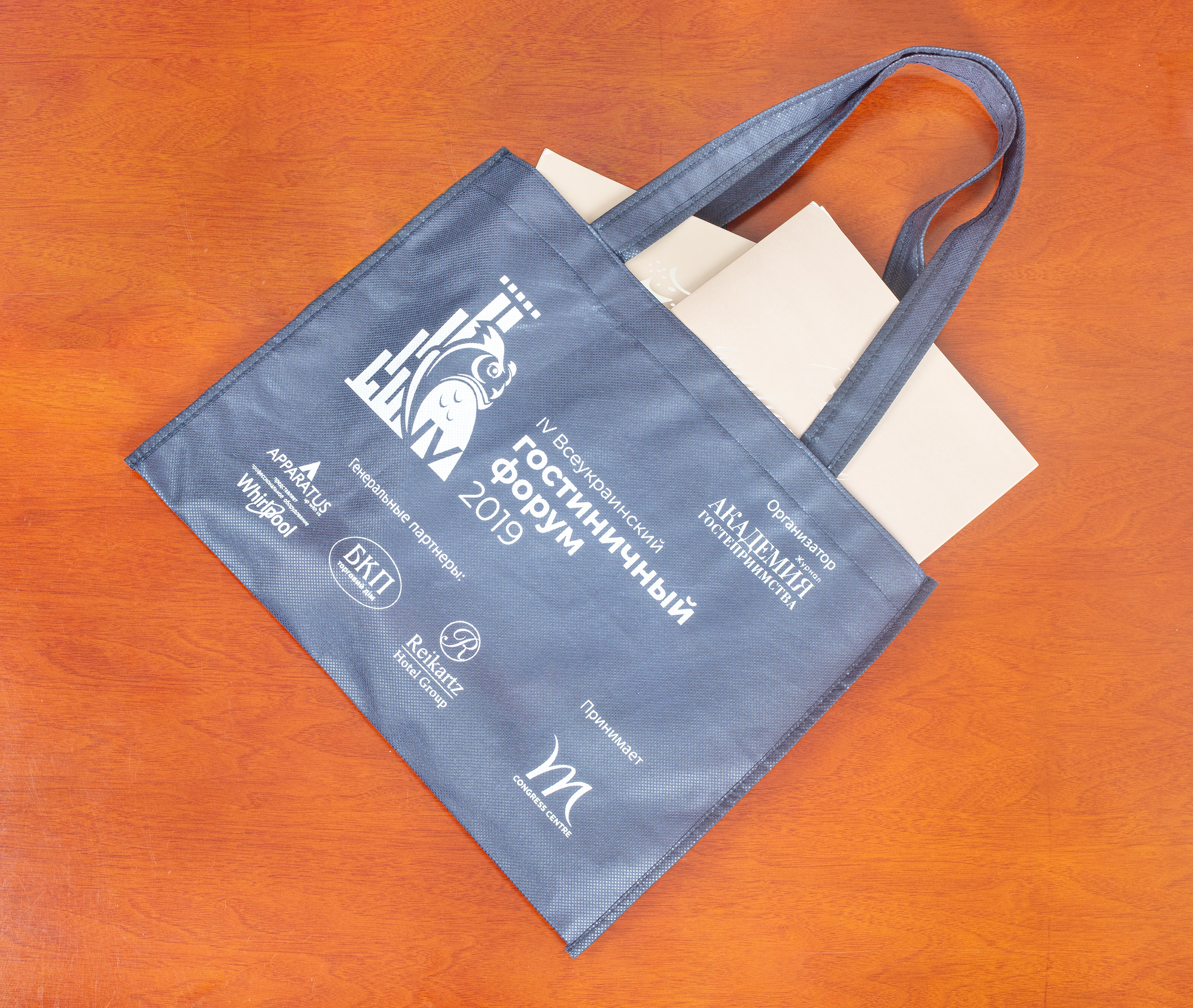 The basic model of promotional bags is flat, dimensions: 35×35 cm, 30×40 cm, with two short or long handles. Also, flat messenger bags are made, with one long handle over the shoulder.