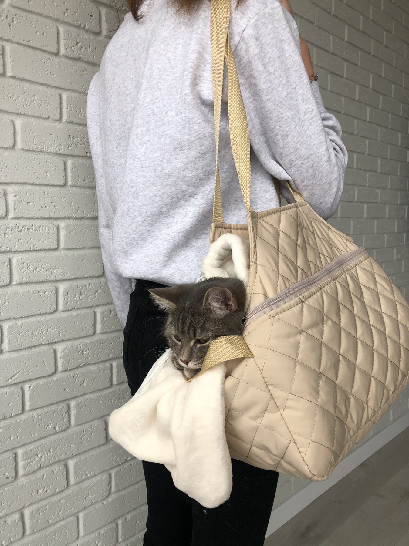 - The bag should have a strap with a carabiner so that in the event of a sudden fright, your pet could not suddenly jump out of the bag and just run away from you. At the same time, the leash inside must have a length sufficient for the free movement of the pet inside;